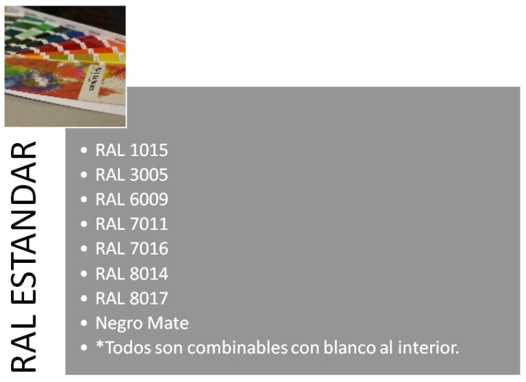 La carta RAL es de uso muy común. Originalmente la carta RAL contaba con 40 tonos, aunque en la actualidad su número es mayor.